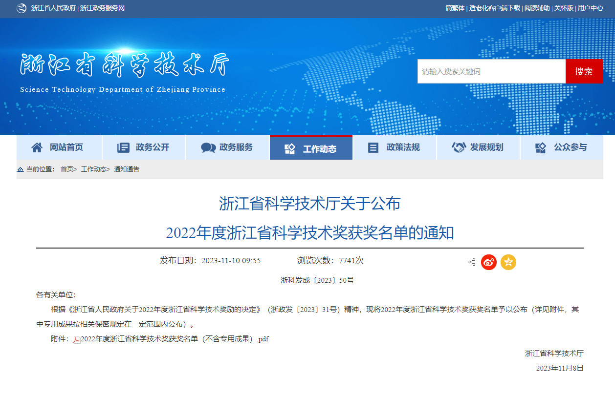 利珀科技榮獲2022年度浙江省科技進步獎一等獎