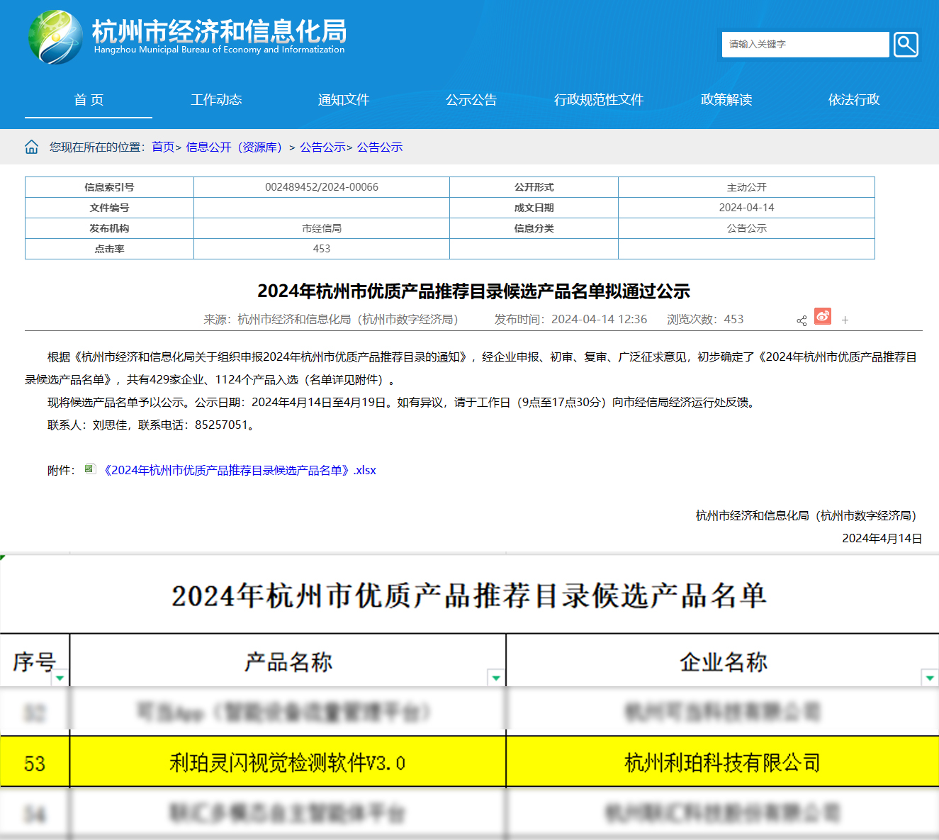 近日,杭州市經濟和信息化局公布了《2024年杭州市優(yōu)質產品推薦目錄候選產品名單》,利珀科技自主研發(fā)的“利珀靈閃視覺檢測軟件V3.0”成功入選該目錄名單。