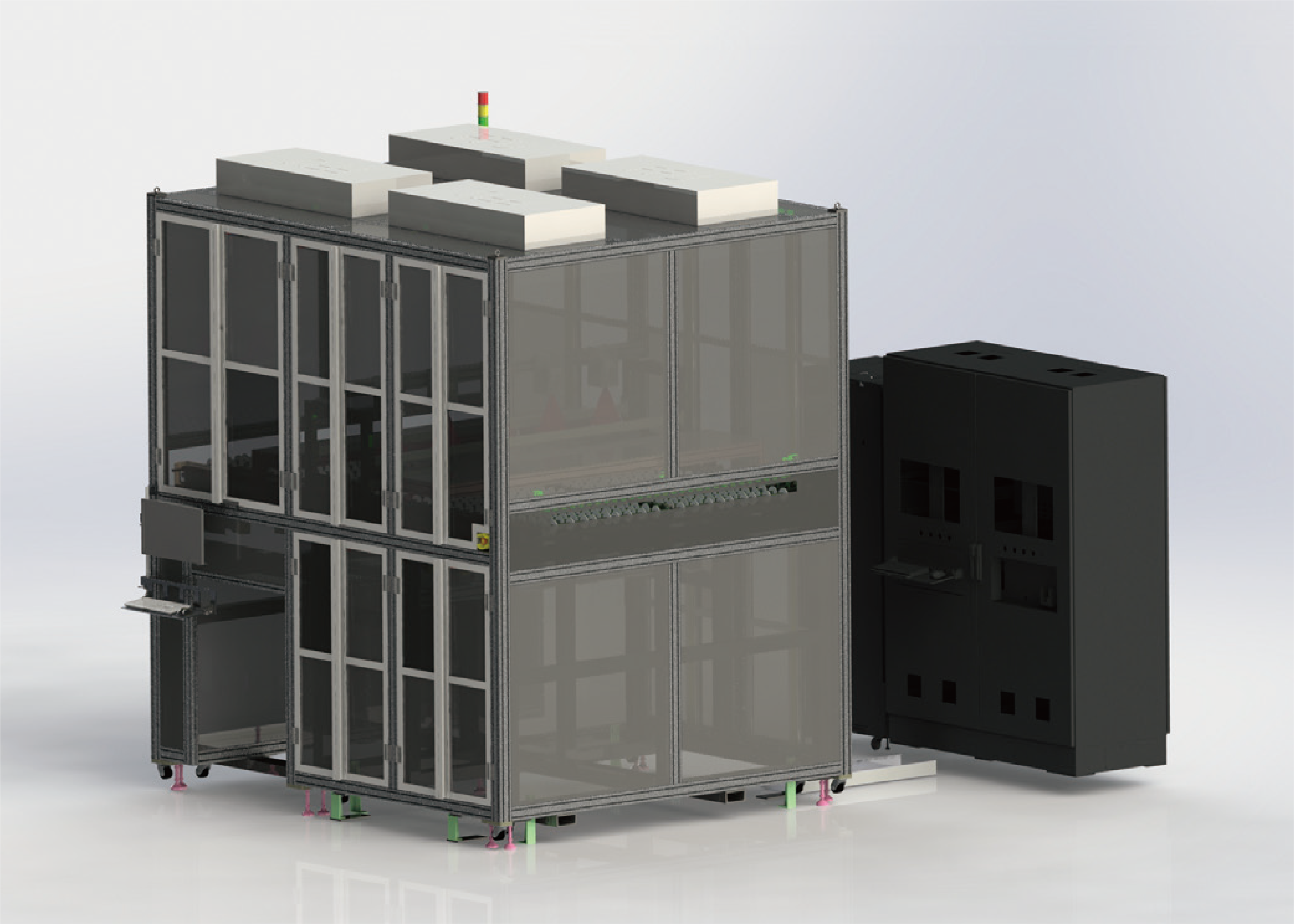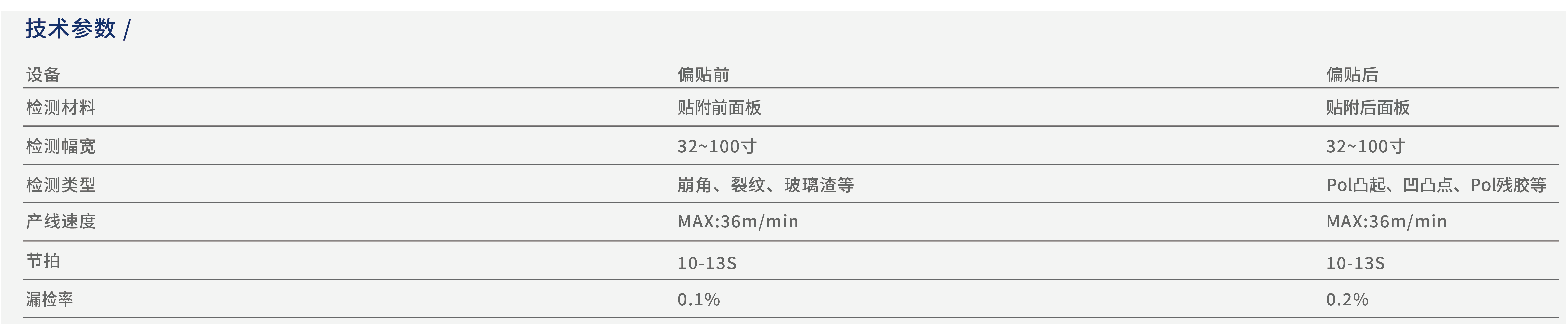 該設(shè)備用于RTP產(chǎn)線上Panel貼附前和貼附后的缺陷檢測,如貼附前的崩角、裂紋、玻璃渣等;貼附后的Pol凸起、凹凸點、Pol殘膠等;檢測后的OK/NG結(jié)果通過PLC輸出,并將缺陷信息傳輸?shù)侥繖z工位。