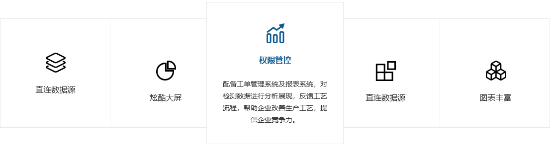 • 報表分析,反饋工藝流程:配備工單管理系統(tǒng)及報表系統(tǒng),對檢測數(shù)據(jù)進(jìn)行分析展現(xiàn),反饋工藝流程,幫助企業(yè)改善生產(chǎn)工藝,提供企業(yè)競爭力。